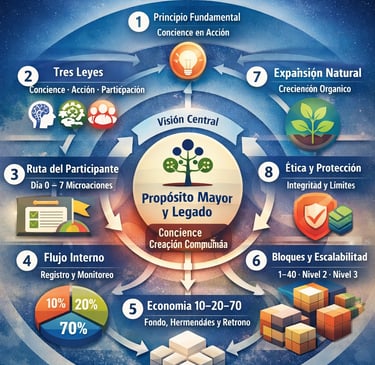 Finanzas EstratégicasSistema de gestión consciente de recursos, aportes y flujos, orientado a la unificación, la sostenibilidad ética y el crecimiento estratégico del ecosistema, siempre bajo dirección humana y CORE inmutable.